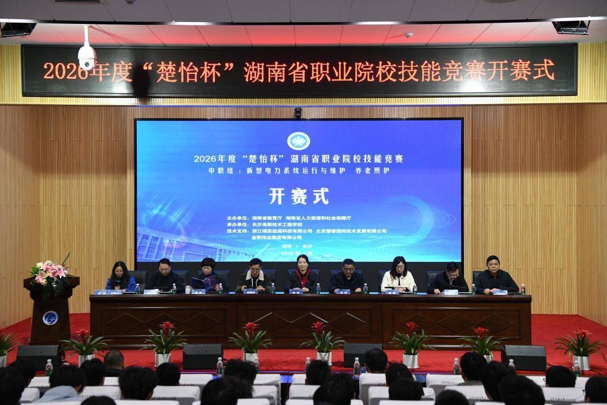 2月2日,2026年度“楚怡杯”湖南省职业院校技能竞赛中职组新型电力系统运行与维护、养老照护赛项,在长沙高新技术工程学校艺术体育中心正式开幕。本次赛事由湖南省教育厅、湖南省人力资源和社会保障厅主办,湖南湘江新区管理委员会等有关单位联合承办。